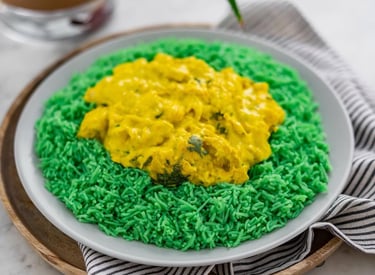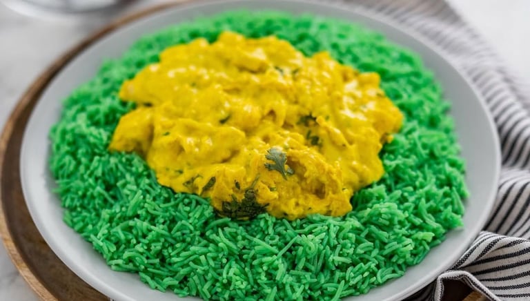 Try the taste of excellence! 🍛 Our delicious green rice with carefully spiced curry chicken - a wonderful blend of rich flavors and authentic spices. An irresistible meal! 😋🔥